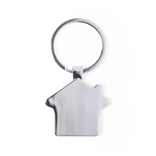 Llavero con forma de casa de línea nature, en combinación de materiales metal de acabado brillante y bambú. Con amplia superficie para marcaje y presentado en bolsa individual con tarjeta kraft.