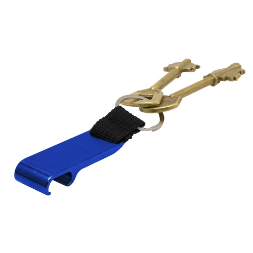 Elegante y práctico, el infaltable de bolsillo.Llavero destapador con correa de poliester color negro de 2.5 x 1.5cm. Pintura acabado brillante. Medidas: 9,5 x 1,9 cm.