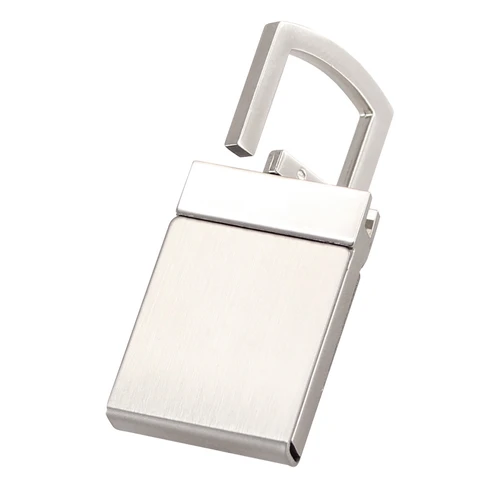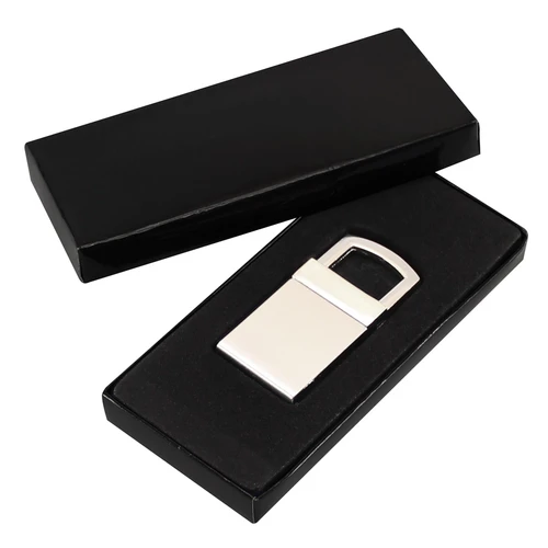 Llavero Metálico modelo "Lock". Presentación en estuche laminado negro con cuna aterciopelada.