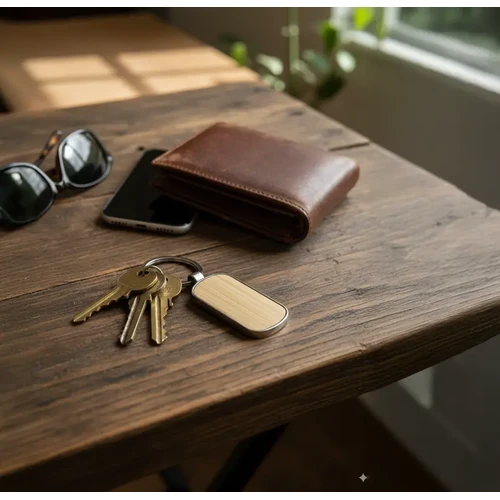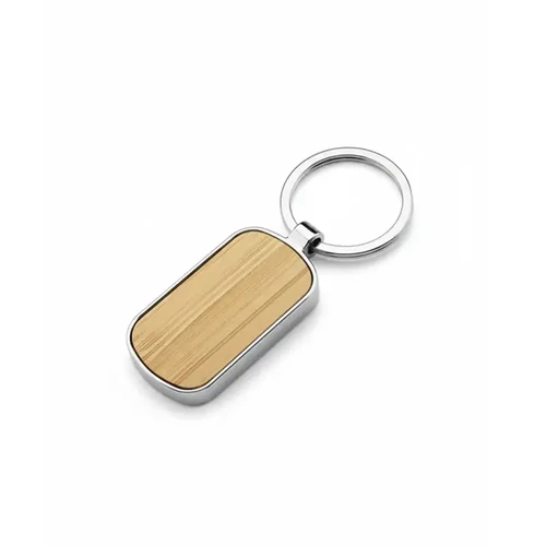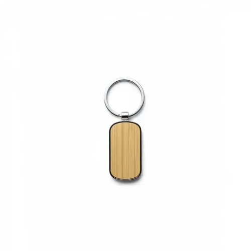 Llavero elegante de forma ovalada hecho de aleación de zinc y bambú natural fabricado con materiales duraderos y sostenibles. Cuenta con un diseño simple y moderno con anilla metálica para llaves es ideal para uso diario como accesorio ecológico o como regalo corporativo personalizado.
