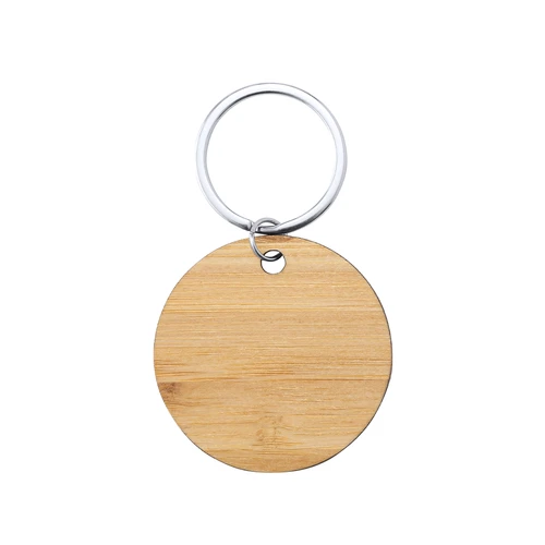 Llavero de línea nature fabricado en bambú, disponible en diseños circular, cuadrado y rectangular.