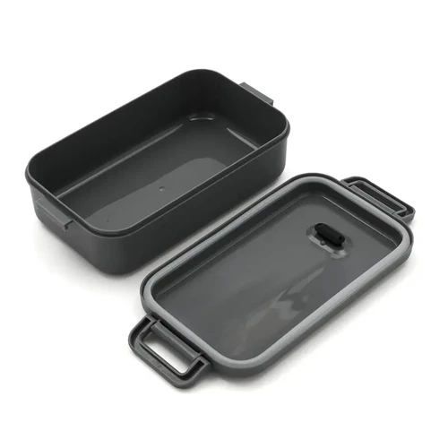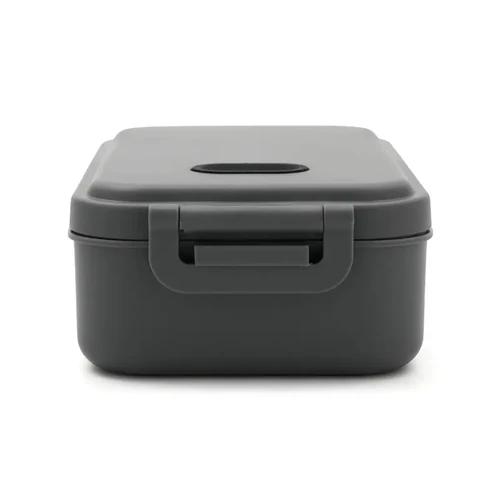 Contenedor para alimentos de PP y silicona. Hecho a base de polipropileno (PP) y silicona. Cuenta con una tapa con cierre firme y detalles en negro, diseñada para mantener los alimentos frescos y seguros. Su estructura liviana lo hace fácil de transportar.
