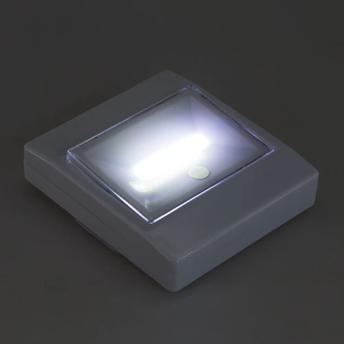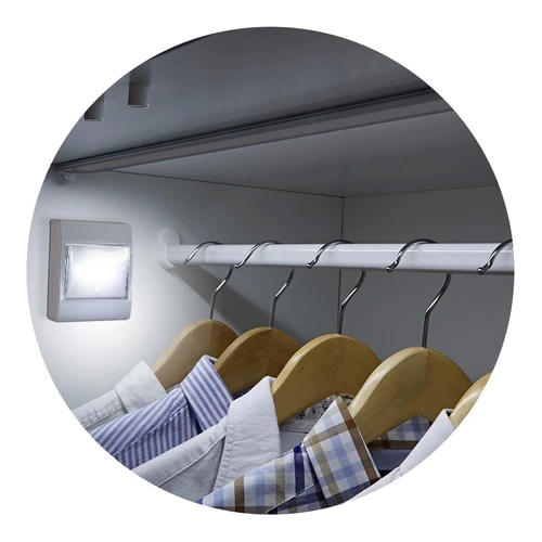 Luz LED de emergencia modelo "interruptor". Contiene 2 bandas de velcro con autoadhesivo, para instalar en cualquier pieza. Incluye círculo "glow in the dark" para visualización de encendido. Usa 3 pilas AAA (no incluidas).