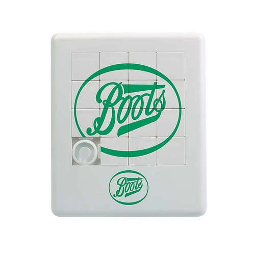 Mini-puzzle plástico. Permite impresión sobre las piezas cuadradas y el objetivo es desordenarlas para luego ordenarlas y así formar el logo o figura impresa.