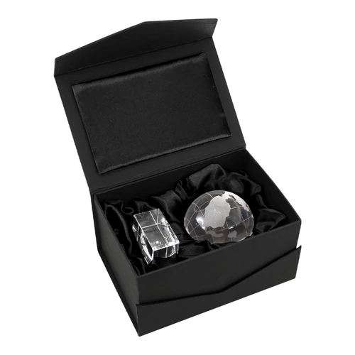 Mini Trofeo de Cristal modelo "World". Presentación en caja de cartón forrado negro.