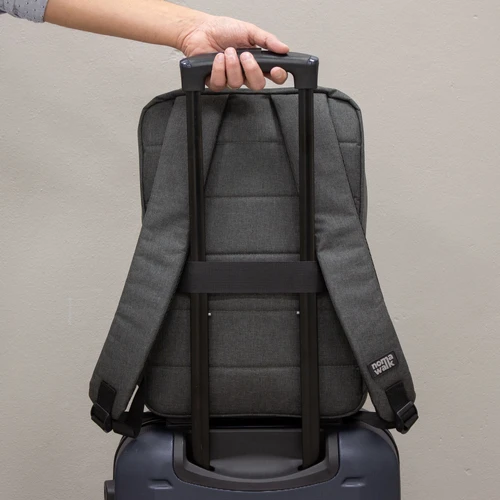 28 x 40,5 x 9 cm. Capacidad 11 litros. Poliéster 300D, interior Poliéster estampado 210D. Mochila portanotebook de hasta 15 pulgadas con 2 compartimentos, principal con bolsillo acolchado porta notebook y bolsillo plano. Segundo compartimento con cierre y 1 bolsillo frontal con cierre horizontal. Correas y espalda acolchadas. Tiradores de cierres metalicos y engomados . Incluye tira para sujetar la mochila en la manija extensible de un equipaje de mano.