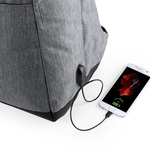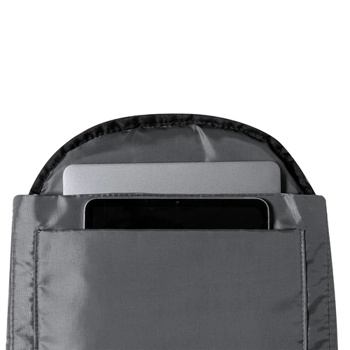 Mochila antirrobo en resistente poliéster 300D. Tejido de alta calidad resistente a cortes y a roces, con bolsillo antirrobo en la espalda para guardar los objetos de valor. Compartimento principal con cierre de cremallera equipado con conexión de powerbank -no incluida- y dos compartimentos interiores independientes y acolchados para portátil de hasta 15 pulgadas y para tablets de hasta 10 pulgadas, además de bolsillos complementarios interiores. Cuenta también con un bolsillo exterior en el frontal con cierre de cremallera. Cómoda de llevar gracias a su espalda acolchada como las asas ergonómicas y ajustables, además con accesorio para trolley.
