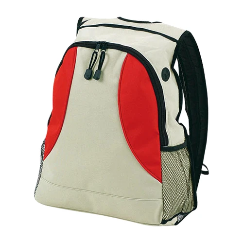 Mochila bicolor modelo "Zeus" en tela raquelada polyester 600D. Con cintas acolchadas y salida para auriculares.