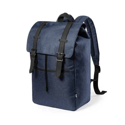 Mochila urban de línea nature, fabricada en resistente poliéster 300D RPET libre de PVC, elaborado a partir de plástico reciclado, para así fomentar la reutilización de residuos plásticos y contribuir a la sostenibilidad del planeta. Bolsillo principal con tiras y cierres de hebilla metálicos con bolsillo frontal de cremallera y tirador metálico. Interior con bolsillo acolchado para portátil de hasta 15 pulgadas y tablet de hasta 10 pulgadas. Cintas ajustables para hombro acolchadas, con distintivo RPET en etiqueta exterior.