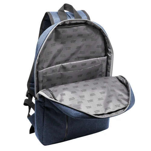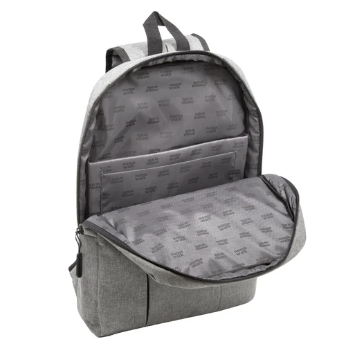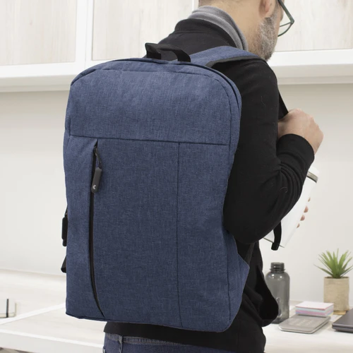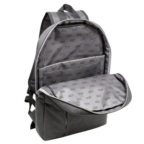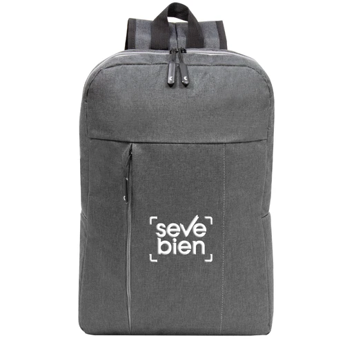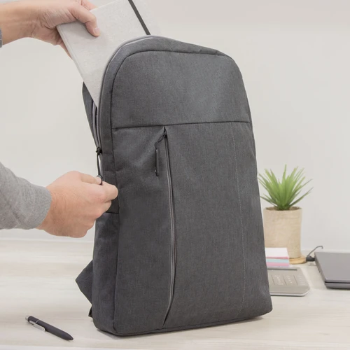 30 x 44 x 8 cm. Capacidad 11 litros. Poliéster 300D . Mochila Portanotebook hasta 16'. Compartimento principal con cierre y bolsillo frontal con cierre lateral y detalle de costura vertical. En el interior posee un compartimento acolchado para notebook y un bolsillo adicional para tablet. Tiradores de cierre engomados. Presencia de marca en su interior y en una de sus correas.