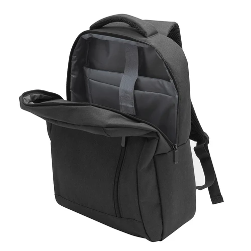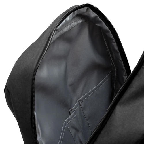 28 x 41 x 11 cm. Capacidad 13 litros. Poliester 300D / PVC Wulong. Tela interior poliéster 210 D. Mochila portanotebook hasta 15". Compartimento principal con bolsillo para notebook acolchado y bolsillo organizador. Frente con dos bolsillos, uno vertical y otro horizontal. Bolsillo lateral izquierdo. Asa superior, correas y respaldo acolchados. Correas ajustables. Tira para sujetar la mochila en la manija extensible de un equipaje de mano. Tiradores de cierres metálicos.