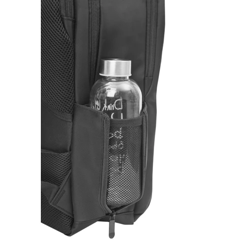 30 x 45 x 9 cm. Capacidad 12 litros. Poliéster 200x70D. Mochila portanotebook hasta 15 pulgadas. Dos bolsillos frontales con cierres ocultos. Cuenta con tres compartimentos. Primer compartimento con dos espacios para guardar celular y bolígrafos. Segundo compartimento acolchado y bolsillos organizadores. Tercer compartimento acolchado. Dos bolsillos laterales con red ocultos con cierre. Correas ajustables y espalda acolchadas con red que permite la ventilación y un bolsillo de seguridad con cierre. Tiradores de cierre metálicos.