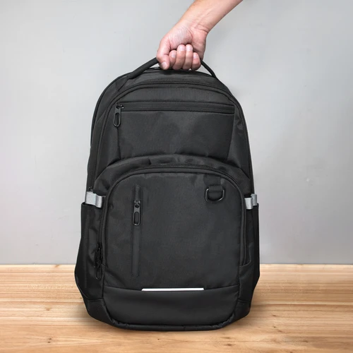 Estilo y funcionalidad en cada viaje.Mochila portanotebook de hasta 16 pulgadas. Cuenta con tres compartimentos: Compartimento posterior con bolsillo acolchado portanotebook con cierre de velcro y bolsillo plano. Amplio compartimento principal con bolsillo externo con cierre horizontal afelpado portagafas. Compartimento frontal con múltiples bolsillos para accesorios y mosquetón plástico portallaves en su interior, exterior con detalle en poliuretano y ribete reflectante, cierre impermeable vertical y gancho porta accesorios. Dos bolsillos laterales portabotellas o accesorios. Asa superior reforzada. Correas ajustables y respaldo acolchados. Tira para sujetar la mochila en la manija extensible de un equipaje de mano. Tiradores de cierres metálicos.Medidas: 30 x 46 x 19 cm.