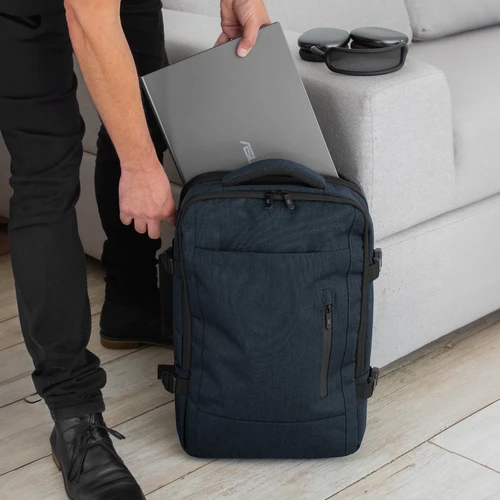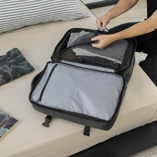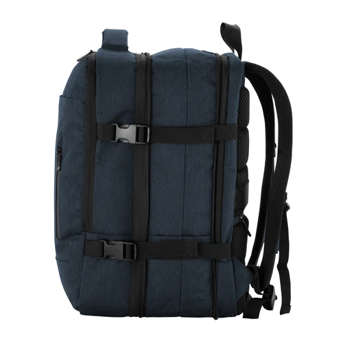 Organizada, acolchada y expandible.Mochila carry on con 3 compartimentos acolchados. Compartimento principal central expandible con cierre de apertura 360° , interior con cubierta de red con cierre perimetral y bolsillo con cierre horizontal. Compartimento posterior con cierre, bolsillo portanotebook de hasta 16 pulgadas con tira de seguridad con cierre de velcro y bolsillo plano . Compartimento frontal, exterior con bolsillo con cierre horizontal y bolsillo vertical con cierre impermeable, interior con bolsillos organizadores y un bolsillo de red. Asa acolchada y reforzada para mejor traslado. 2 correas de hebillas ajustables al volumen que se traslade. Espalda acolchada con red que permite ventilación. Tira para sujetar la mochila en la manija extensible de un equipaje de mano y bolsillo de seguridad con cierre. Correas acolchadas. Tiradores de cierre metálicos. Medidas: 30 x 44 x 13 cm. (cerrada) y 30 x 44 x 24 cm. (expandida)