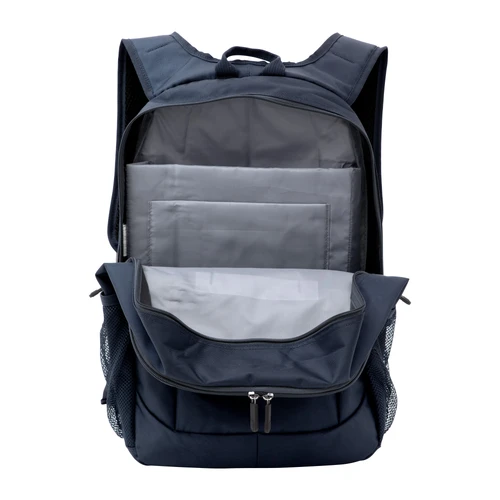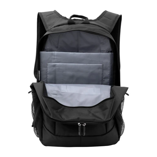 Espacio inteligente para jornadas exigentes.Mochila portanotebook de hasta 16 pulgadas. 2 compartimentos con doble cierre. Amplio compartimento principal posterior con bolsillos acolchados portanotebook y portatablet. Compartimento frontal, interior con bolsillos organizadores y 1 bolsillo frontal con cierre horizontal. 2 Bolsillos laterales de red elastizados porta botellas y accesorios. Asa superior, correas ajustables reforzadas y acolchadas, unidas en su parte superior para mayor resistencia, protección y comodidad. Espalda acolchada. Cierres metálicos con deslizadores de goma con detalles de color.Medidas: 46 x 30 x 16,5 cm.