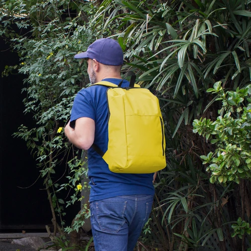 Estilo y funcionalidad.Mochila urbana. Bitono (cuerpo principal de un color, correas combinadas, asa y cierres en color negro). Compartimento principal con cierre. Bolsillo frontal con cierre lateral vertical. Correas ajustables. Tiradores de cierres metálicos.Medidas: 43 x 27 x 12 cm.