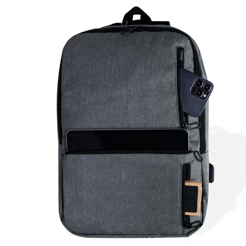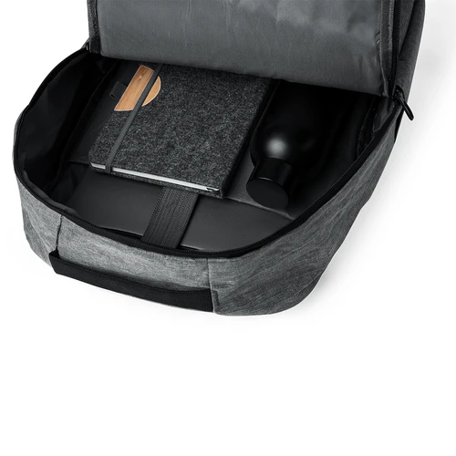 Mochila elaborada en resistente 600D RPET. Equipada con un cierre de cremallera de doble tirador y tres bolsillos frontales de acceso rápido. En su interior, cuenta con compartimentos acolchados diseñados para tablet de hasta 10 pulgadas y portátil de hasta 15 pulgadas. Las cintas de hombros son acolchadas y ajustables para brindar comodidad. Además, presenta una cinta superior y bolsillo lateral para mayor funcionalidad. Disponible en tres elegantes colores, con cremalleras negras. Logotipo RPET en etiqueta. Presentada en una bolsa individual reciclada. El material RPET se elabora a partir de plástico reciclado, para así fomentar la reutilización de residuos plásticos y ayudar a la sostenibilidad del planeta.