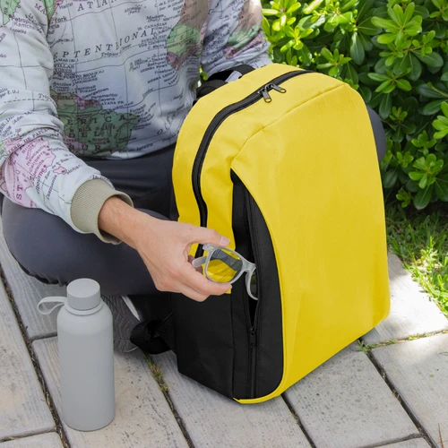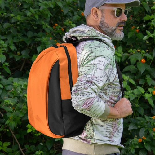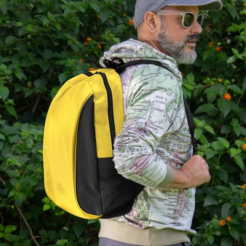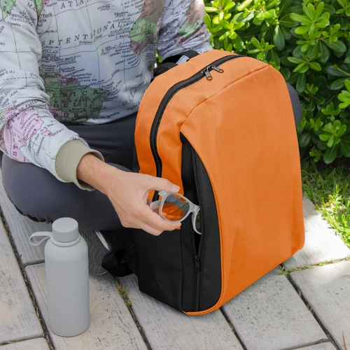 Tu compañera perfecta para la ciudad.Mochila urbana. Bitono (cuerpo principal de un color y laterales, espalda, correas, asa y cierres en color negro). Compartimento principal con cierre. Amplio compartimento frontal con cierre lateral vertical. Interior forrado y reforzado. Correas ajustables y espalda acolchada. Tiradores de cierres metálicos.Medidas: 43 x 31 x 17 cm.