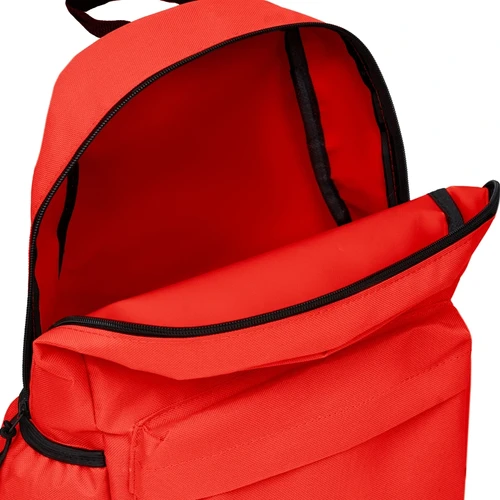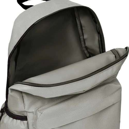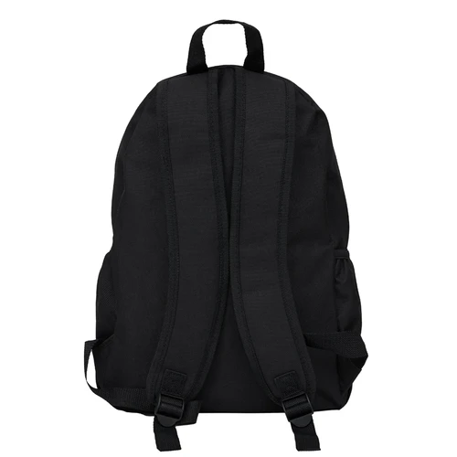 Mochila confeccionada en Polyester, con 2 bolsillos frontales con cierre y 2 bolsillos laterales elásticos porta botellas. Cuenta con correas regulables. Medidas: 42 cm alto | 27cm ancho | 12cm profundidad. Capacidad 13.5 lts.