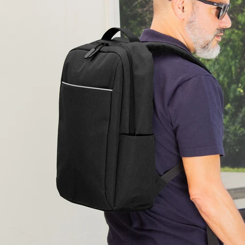 Ligera, funcional y lista para moverse.Mochila portanotebook de hasta 16 pulgadas. Compartimento principal con bolsillo posterior acolchado portanotebook con cierre de velcro y múltiples bolsillos para accesorios. Amplio bolsillo frontal horizontal con ribete reflectante. Dos bolsillos laterales portabotellas o accesorios. Asa superior reforzada. Correas ajustables y respaldo acolchados. Tira para sujetar la mochila en la manija extensible de un equipaje de mano. Tiradores de cierres plásticos texturados para un mejor agarre. Tejido ligero y resistente, de secado rápido.Medidas: 42 x 27,5 x 12,5 cm.