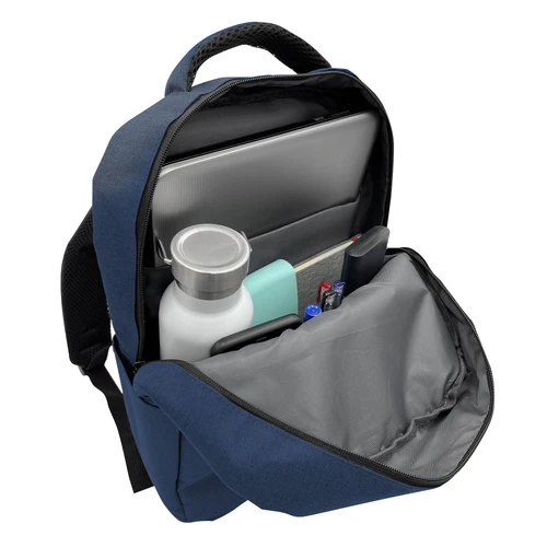29 x 43 x 11 cm. Capacidad 13 litros. Poliester 300D Wulong. Mochila portanotebook de hasta 15 pulgadas. Interior con bolsillo acolchado y múltiples compartimentos para accesorios. Bolsillo principal en el frente con cierre y otro bolsillo lateral para trasladar tu botella y mantenerte hidratado. Correas regulables y espalda acolchadas con red. Tiradores de cierres metálicos.