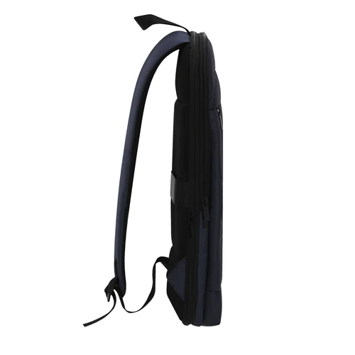Mochila extensible confeccionada en resistente PU/ poliéster 900D. Equipada con cierre de cremallera de doble tirador, con posibilidad para ampliar la capacidad. Con compartimento interior acolchado para portátil de hasta 15 pulgadas. Cómodas cintas de hombros acolchadas, transpirables y ajustables. Incluye cinta para fijarla en trolley y maletas.