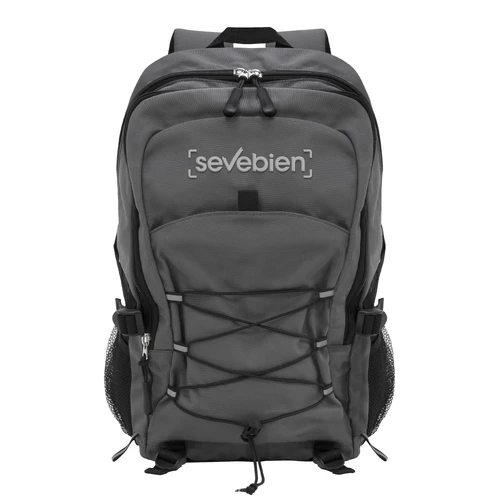 28 x 41 x 17 cm Capacidad 19 litros. Algodón y Poliester. Mochila outdoor. Múltiples espacios para transportar objetos. Compartimento principal con bolsillo elastizado. Bolsillo frontal con cierre, cordón elástico cruzado ajustable y dos bolsillos de red laterales y cintas de amarre. Detalles reflectivos. Cierres metálicos con tiradores de goma. Correas regulables y espalda acolchadas.