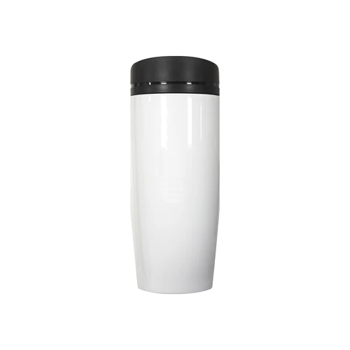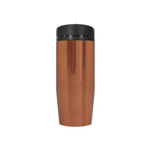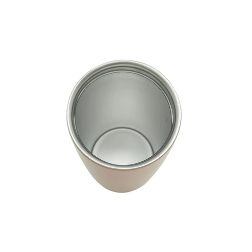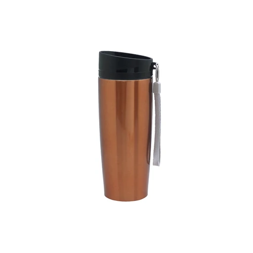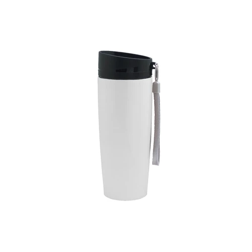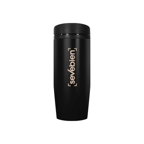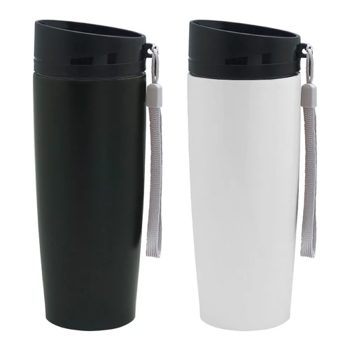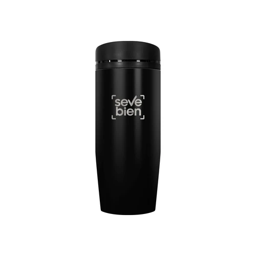 Ø 6 x 19,5 cm. Capacidad 350 ml. Acero inoxidable. Mug doble pared Interior acero 304 y exterior acero 201. Tapa a rosca, botón para abrir y cerrar. Lazo para sujetar en la muñeca. Base antideslizante. Mantiene las bebidas frías o calientes por más tiempo. Presentación en caja de regalo.