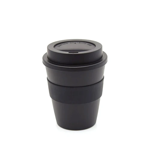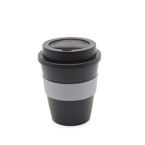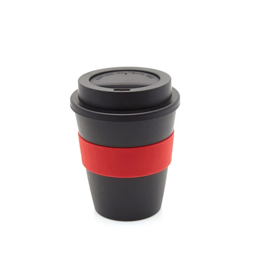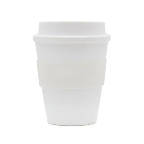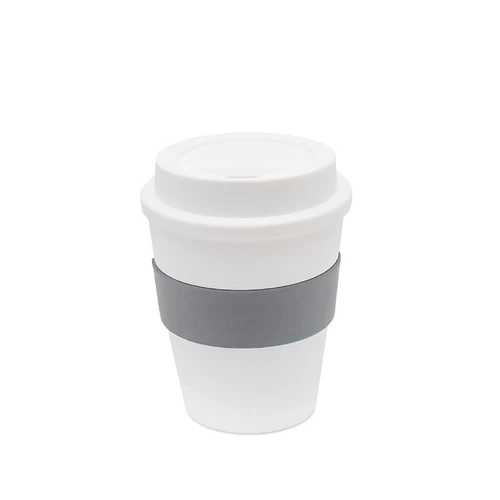 Vaso reutilizable fabricado en polipropileno con banda de silicona personalizable.
