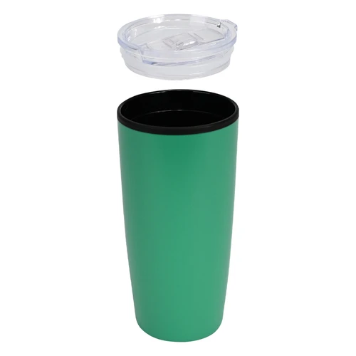 Mug metálico doble pared aislante, interior plástico PP, exterior Acero inoxidable 201 SS, recubierto con pintura POWDER COAT, modelo "LOFT". Producto BPA FREE, para el contacto con líquidos y alimentos. Fondo de silicona negra ABS anti-deslizante. Tapa removible de plástico PS Crystal Clear con sello cilíndrico de silicona. Capacidad 600ml. Presentación en bolsa PP + caja de regalo de cartón negro.