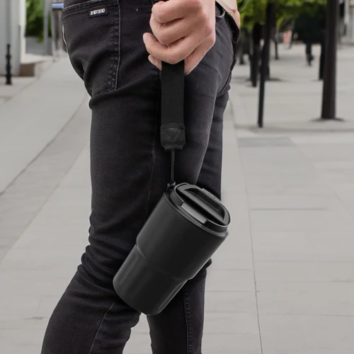 Disfruta cada sorbo, donde sea.Mug doble pared, sellado al vacío. Mug con aislamiento térmico. Tecnología vacuum. Interior en acero 304 y exterior en acero 201. Tapa de polipropileno con anillo de silicona y correa de poliéster en color negro. Pintura acabado mate. Mantiene hasta 8 hs la temperatura de las bebidas calientes y hasta 12 hs la de las bebidas frías. Medidas: Ø 8,8 cm x 14,5 cm.