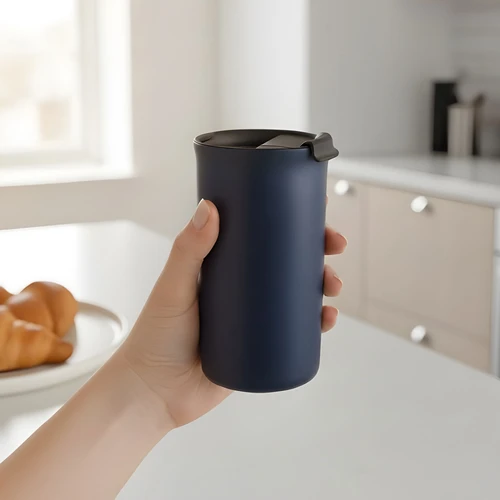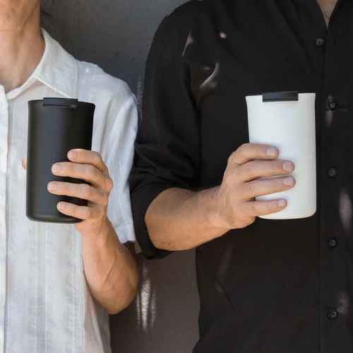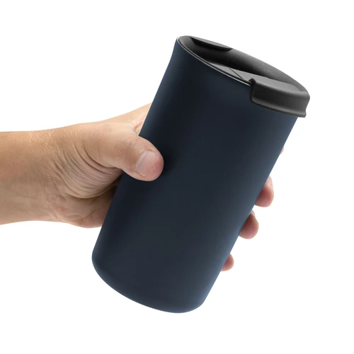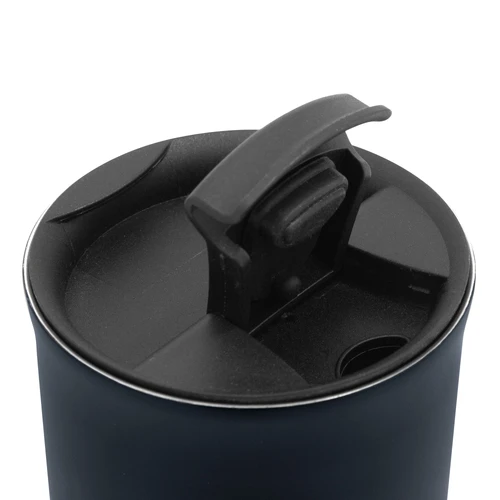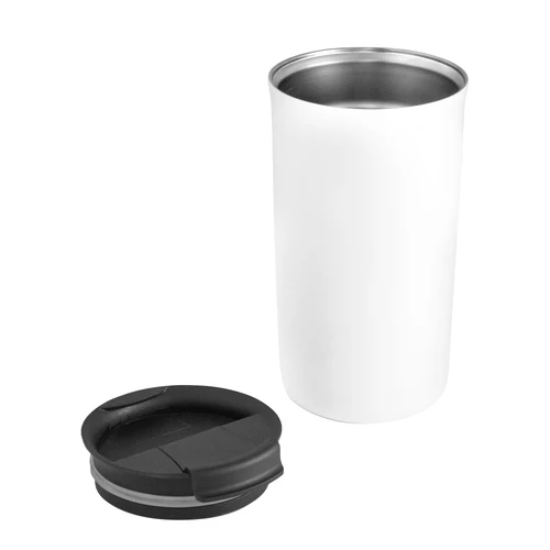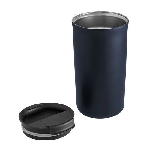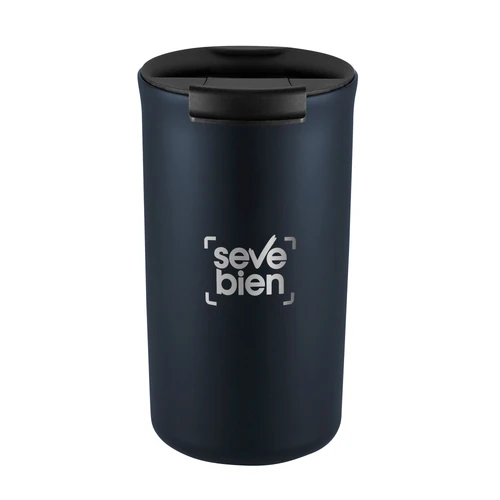 Mug térmico doble pared sellado al vacio. Aislamiento térmico. Tecnología vacuum. Interior en acero 304 y exterior en acero 201 con acabado mate. Tapa de polipropileno y anillo de silicona antivuelco. Base antideslizante con almohadilla de EVA color negro. Mantiene hasta 6 hs la temperatura de las bebidas calientes y hasta 10 hs la de las bebidas frías.