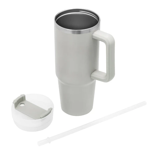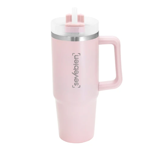Diseño Térmico. El favorito de quienes nunca se detienen. Mug doble pared, sellado al vacío con sorbete. Tecnología Vacuum. Interior en acero 304 y exterior en acero 201. Tapa plástica transparente a rosca con anillo de silicona. Cierre giratorio porta sorbete. Sorbete plástico translucido. Pintura exterior con acabado mate. Mantiene hasta 8 hs la temperatura de las bebidas calientes y hasta 12 hs la de las bebidas frías. Medidas: Ø 8,8 cm x 24 cm.