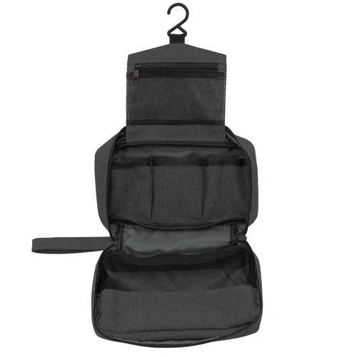 Organiza tu viaje con estilo Y practicidad.Necessaire colgante. Compartimento principal con cierre y asa de tela para transportar. Interior: compartimento superior rebatible con gancho para colgar y bolsillo de red con cierre, compartimento central con 3 bolsillos y amplio compartimento inferior con ventana de red y cierre. Medidas: 25 x 7,5 x 13 cm (cerrado) y 25 x 7,5 x 51 cm (abierto).