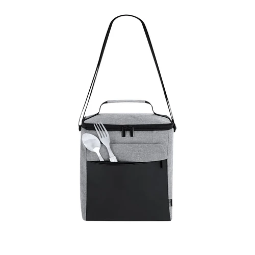 Nevera fabricada en resistente RPET 600D en combinación con PU. Incluye compartimento principal, con cierre de cremallera y doble tirador metálico, con interior isotermo en PEVA. Bolsillo frontal con cierre de cremallera. Incluye cinta bandolera ajustable y asa de mano acolchada en la parte superior. Etiqueta exterior con distintivo RPET.El material RPET se elabora a partir de plástico reciclado, para así fomentar la reutilización de residuos plásticos y ayudar a la sostenibilidad del planeta.