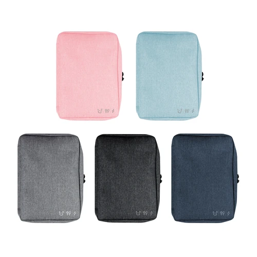 16,5 x 23 x 4 cm.Poliéster. Organizador para cables y accesorios. Cuenta con dos bolsillos de red con cierre. 4 elásticos que permiten arrollar y guardar los cables, 1 elástico porta bolígrafo y 2 elásticos amplios. NO INCLUYE ACCESORIOS.