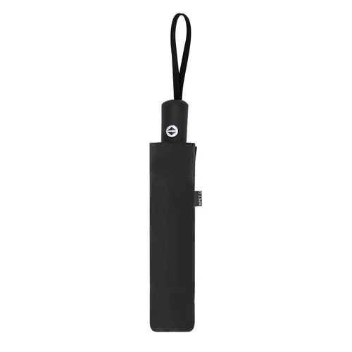Paraguas plegable de 98 cm de diámetro en material pongee 190T RPET de 8 paneles. Con apertura y cierre automáticos, sistema antiviento y varillas en fibra de vidrio. Mango de suave tacto goma, funda de transporte y cinta a juego. Con etiqueta RPET.El material RPET se elabora a partir de plástico reciclado, para así fomentar la reutilización de residuos plásticos y ayudar a la sostenibilidad del planeta.