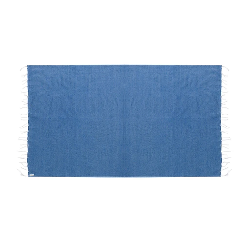 Pareo toalla de 180g/m2 en combinación de algodón reciclado y RPET. El material RPET se elabora a partir de plástico reciclado, para así fomentar la reutilización de residuos plásticos y ayudar a la sostenibilidad del planeta.