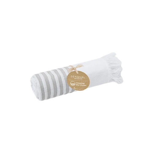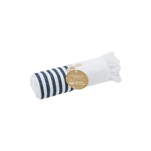 Suave pareo-toalla de 3000 g/m², confeccionado en una combinación de algodón reciclado y poliéster reciclado SEAQUAL.Su diseño presenta una base en blanco combinada con rayas de color y decorada por distinguidos flecos en los extremos. Incluye etiqueta con diseño SEAQUAL, que certifica su origen sostenible y su contribución a la limpieza de océanos. SEAQUAL INITIATIVE trabaja con colaboradores y autoridades para ayudar a limpiar nuestros océanos. Los residuos marinos de nuestras playas, fondos y superficies oceánicas, ríos y estuarios son recogidos por programas de limpieza. Luego se clasifican en diferentes tipos de materiales y la porción de plástico se limpia y se transforma en PLÁSTICO MARINO RECICLADO, una materia prima completamente trazable y que crea productos sostenibles e inspiradores. Al elegir productos que contienen PLÁSTICO MARINO RECICLADO, estás ayudando a limpiar nuestros océanos.JUNTOS POR UN OCÉANO LIMPIO.