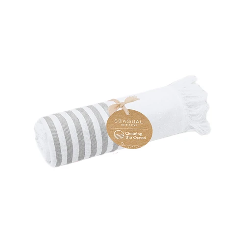 Suave pareo-toalla de 300 g/m², confeccionado en una combinación de algodón reciclado y poliéster reciclado SEAQUAL.Su diseño presenta una base en blanco combinada con rayas de color y decorada por distinguidos flecos en los extremos. Incluye etiqueta con diseño SEAQUAL, que certifica su origen sostenible y su contribución a la limpieza de océanos. SEAQUAL INITIATIVE trabaja con colaboradores y autoridades para ayudar a limpiar nuestros océanos. Los residuos marinos de nuestras playas, fondos y superficies oceánicas, ríos y estuarios son recogidos por programas de limpieza. Luego se clasifican en diferentes tipos de materiales y la porción de plástico se limpia y se transforma en PLÁSTICO MARINO RECICLADO, una materia prima completamente trazable y que crea productos sostenibles e inspiradores. Al elegir productos que contienen PLÁSTICO MARINO RECICLADO, estás ayudando a limpiar nuestros océanos.JUNTOS POR UN OCÉANO LIMPIO.