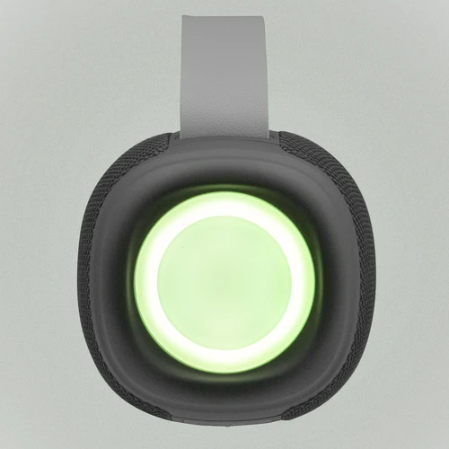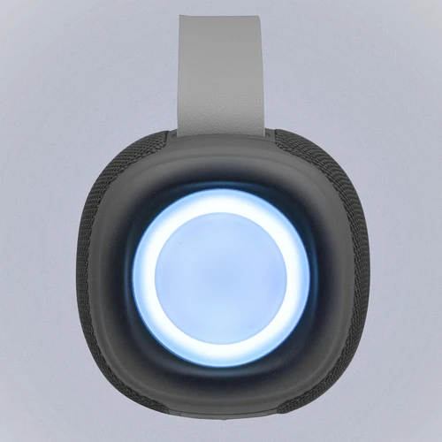 Ø 13 x 11 x 11 cm. Plástico ABS + Tejido resistente al agua + Silicona + Poliuretano. Correa en poliuretano color gris combinando con el panel de control. 2 modos de luz: cálida y fría. Cable de carga USB-C / DC5V. Presentación en caja de regalo Kraft.Potencia: 10 Watts