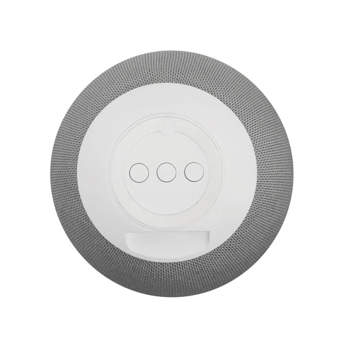 Sonido compacto, fácil de llevar.Parlante Bluetooth. Estructura esférica plástica color blanco y tela rejilla color gris claro. Cable de carga y conexión USB-C en color blanco. Incluye manual de uso.Medidas: Ø 9,6 cm x 8,4 cm.