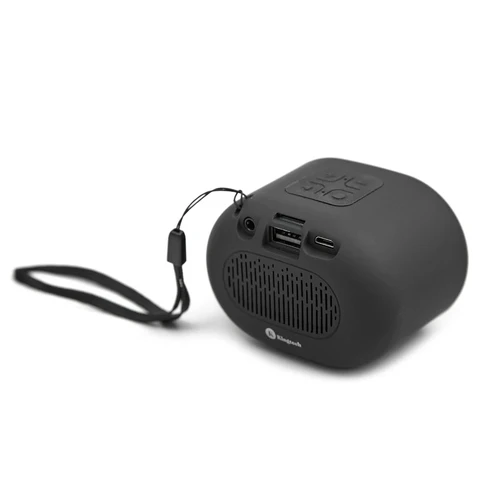 Parlante portátil con tecnología Bluetooth v5.0, micrófono manos libres y modo radio FM. Realizado en combinación de ABS y malla de acero. Incluye ranura para lectura de tarjetas de memoria micro SD, y posibilidad de conexión mediante cable auxiliar de 3,5mm | Batería de 300mAh | Potencia del parlante: 3w | Frecuencia:20Hz-20KHz | Alcance: 10 metros | Peso: 160g | Medidas 80 x 80 x 60mm | Kingtech.