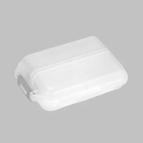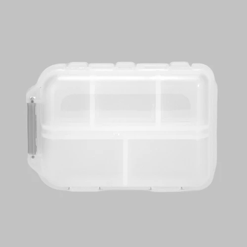 Pastillero Plástico "DOCTOR" con 10 compartimentos interiores. En PVC translúcido frozen (empavonado), con broche gris. Presentación el bolsa blanca biodegradable + caja de cartulina blanca.