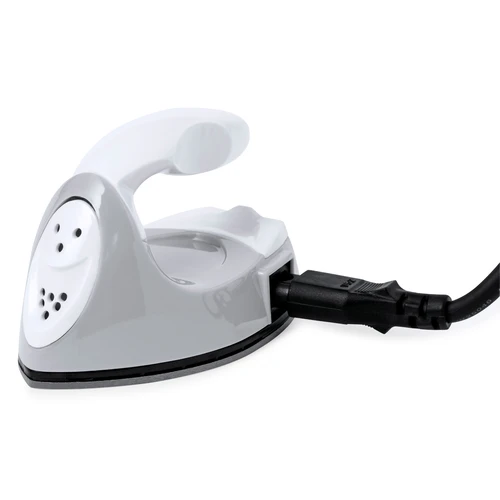 Fantástica plancha de viaje, para quitar arrugar mediante calor seco. De diseño ergonómico en su agarre y tamaño ligero de transportar, con enchufe EU. Presentada en una caja de diseño kraft con instrucciones en español e inglés.