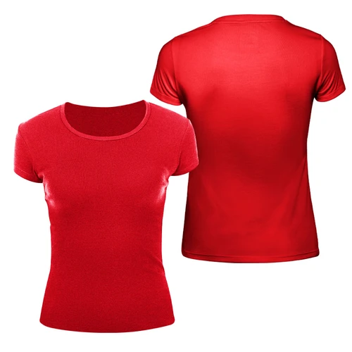 Polera 100% ALGODÓN pre-lavado de 180gr/m2, para MUJER. Cuello redondo, manga corta. Presentación individual en bolsa de polipropileno transparente.