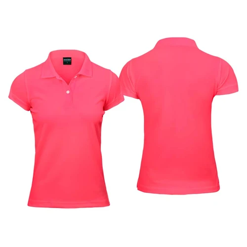 Fina Polera 100% poliéster de 140gr/m2, para MUJER. Cuello y botones, manga corta. Ideal para uso de ocio y oficina. Presentación individual en bolsa de polipropileno transparente.