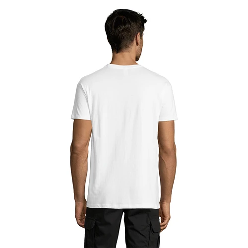 Polera de manga corta de corte regular, confeccionada en Jersey de 150g, 100% algodón semi-peinado, diseñada en formato tubular (sin costuras a los costados) y cuello con tapacosturas.