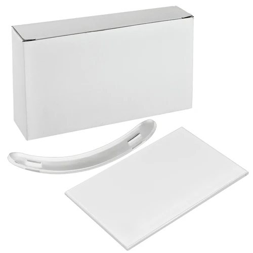 Porta-Retrato balancín para Sublimación. Base curva Acrílico frozen. Porta-Foto de Vidrio de 15.3 x 10.2 x 0.3 cm. Presentación en caja de Cartón blanco.
