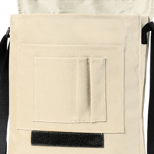 Portadocumentos con solapa de cierre de velcro en poliéster 600D de vivos colores y con franja frontal reflectante. Con asas reforzada a juego, cinta bandolera ajustable y compartimentos interiores con fundas para bolígrafos y smartphone.